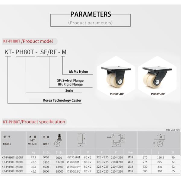 fixed rigid flange nylon caster wheels outdoor Industrial casters KT-PH80T-150